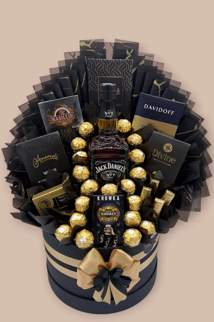 Prawdziwa elegancja nie potrzebuje wielu słów – broni się jakością, stylem i doskonałym smakiem. Zestaw "Jack’s Gold " od PrezentoweLove to luksusowa kompozycja stworzona z myślą o mężczyznach, którzy cenią wyrafinowane połączenia. Głęboka czerń boxu w zestawieniu ze szlachetnym złotem pralin tworzy prestiżowy efekt wizualny, który zapowiada wyjątkową zawartość.