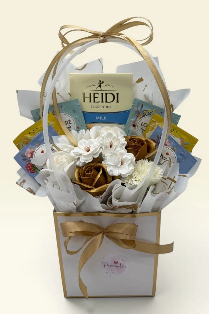 Biały Koszyczek – Elegancki Koszyk z Herbatami i Czekoladą Heidi