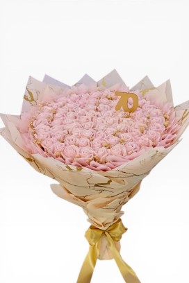 Bukiet 70 pudrowych róż to idealne połączenie estetyki i praktyczności. Zachwyca wyglądem świeżych kwiatów, a jednocześnie pozostaje pamiątką na długi czas, przypominając o wyjątkowej okazji.