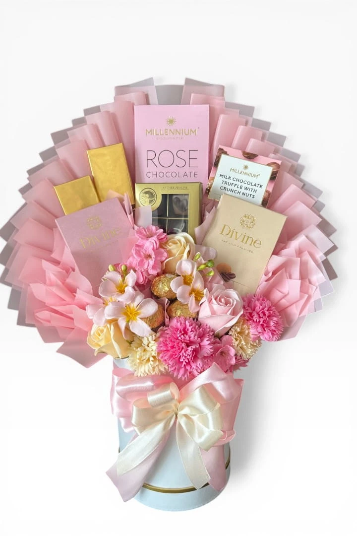 Różowy Ogród Rozkoszy – Ekskluzywny Flower Box z Czekoladą Rose